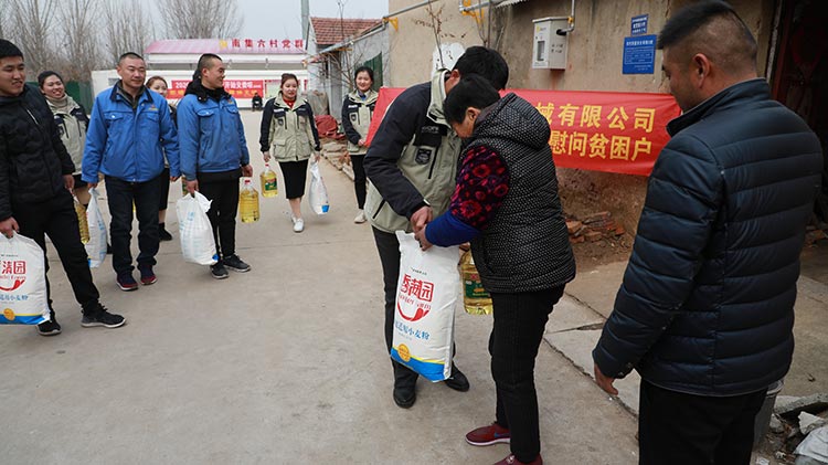 公司準備了大米、食用油等生活物品,在劉總帶領(lǐng)下我們來到了南集六村黨群服務(wù)處,和村領(lǐng)導(dǎo)溝通了解了村內(nèi)貧困戶情況,并一起走訪慰問貧困戶。