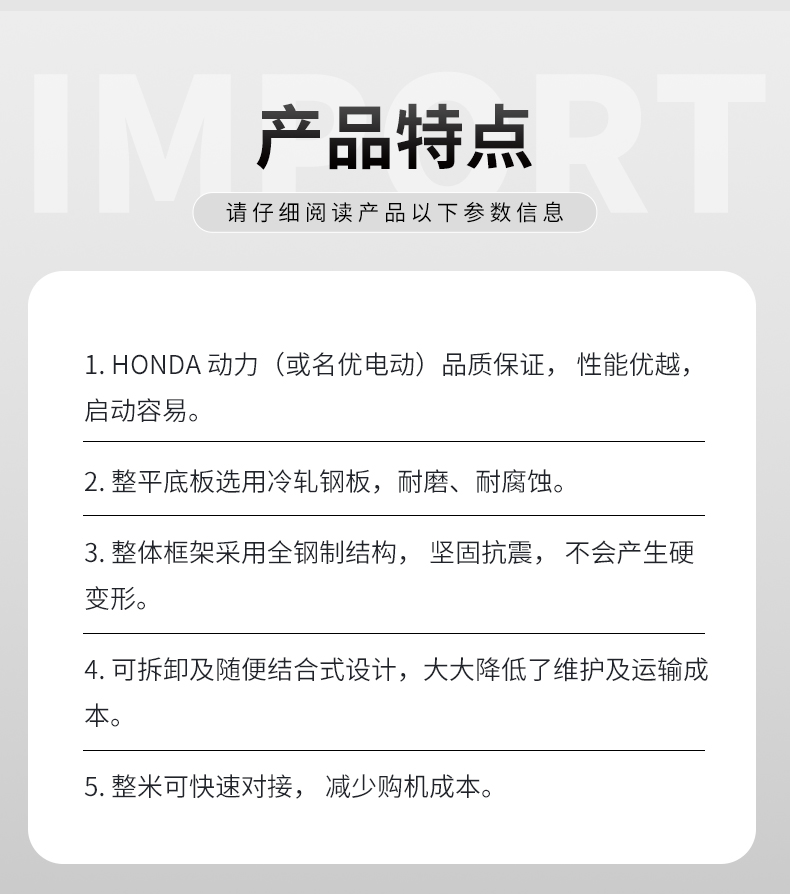 用于混凝土地面的提漿、壓實(shí)、整平、是修建公路、車間、廣場(chǎng)、現(xiàn)代化廠房的新型設(shè)備。是傳統(tǒng)攤鋪機(jī)的升級(jí)換代產(chǎn)品,汽油機(jī)動(dòng)力及電動(dòng)機(jī)可任意選擇。
